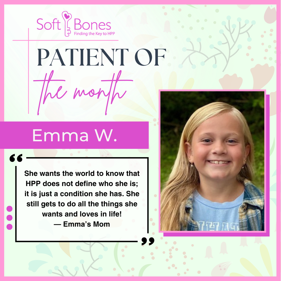 Diagnosis is generally made through x-rays and blood tests and the disease is classified based on the age at which symptoms first appear. The five main types of HPP are: Odonto, Perinatal, Infantile, Childhood and Adult. Researchers understand HPP is a genetic condition of the TNSALP gene, which is part of a patient’s genetic makeup, regardless of when it is diagnosed. However, a genetic diagnosis is currently not an adequate predictor of severity of disease. More research is underway and funded by Soft Bones to gain a better understanding of the genotype/phenotype relationship.