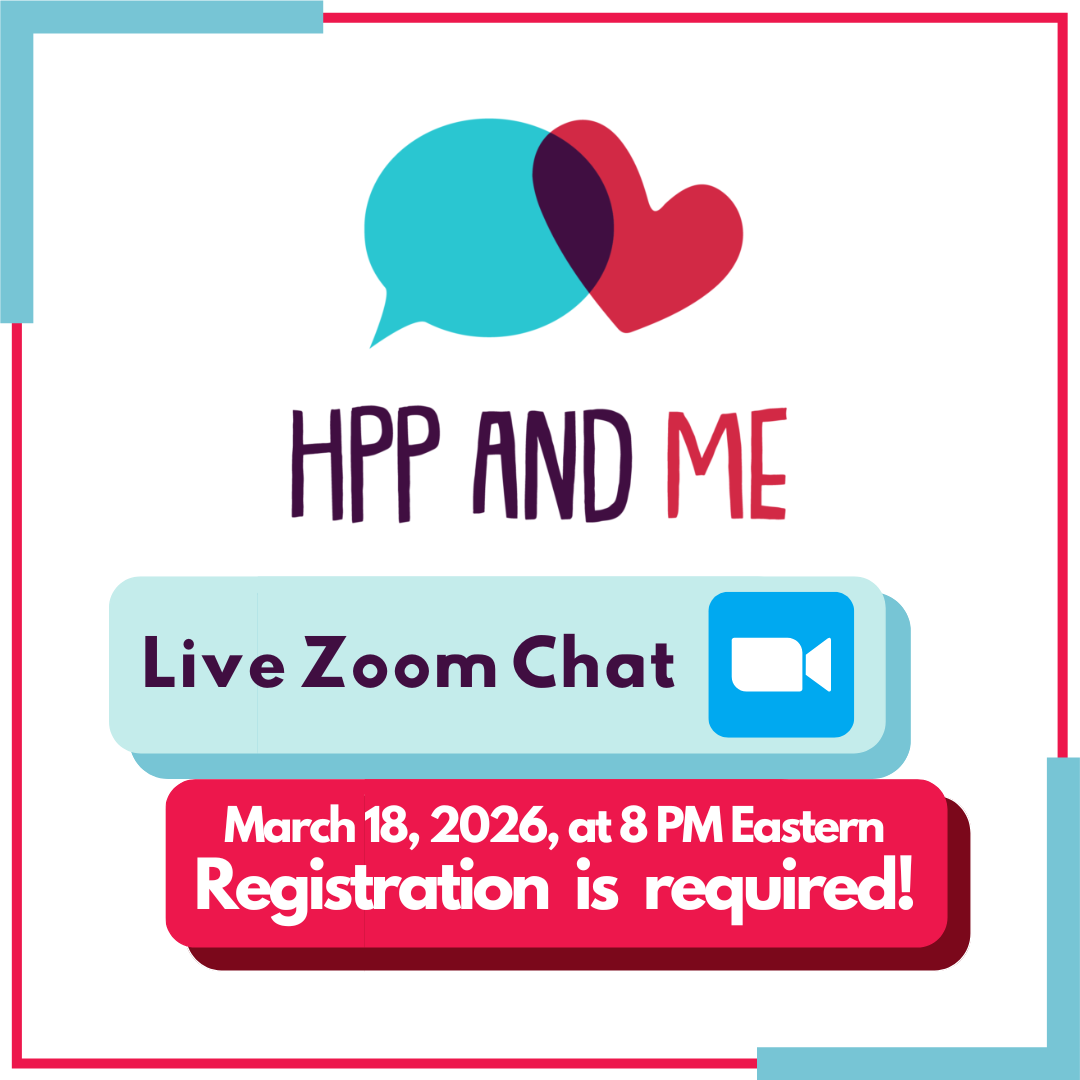 Join us on March 18, 2026, at 8 PM Eastern for an HPP AND ME Zoom Chat. Connect with others and share your experiences with HPP. Registration is required. We hope to see you there!