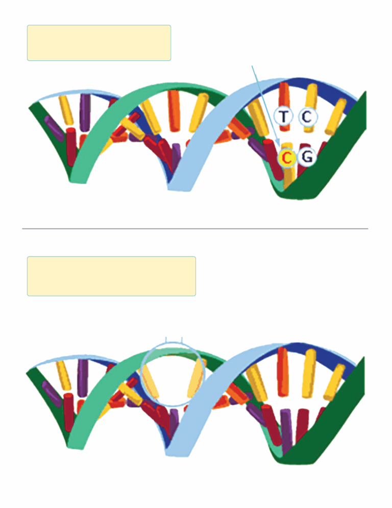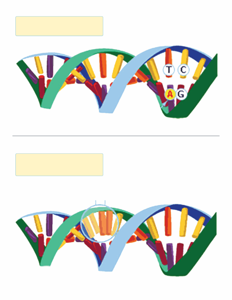 Sometimes there are mistakes or changes in the pattern of letters in the DNA sequence. These errors are known as mutations, which can affect a single gene or multiple genes. Point mutations are changes in one of the DNA’s letters. There can also be larger insertions or deletions in the gene that affect the entire DNA chain. Some of these changes can cause the gene to malfunction, which can impact the specific protein that the gene normally makes. Genetic disorders are caused in whole or part by a change in the DNA sequence.