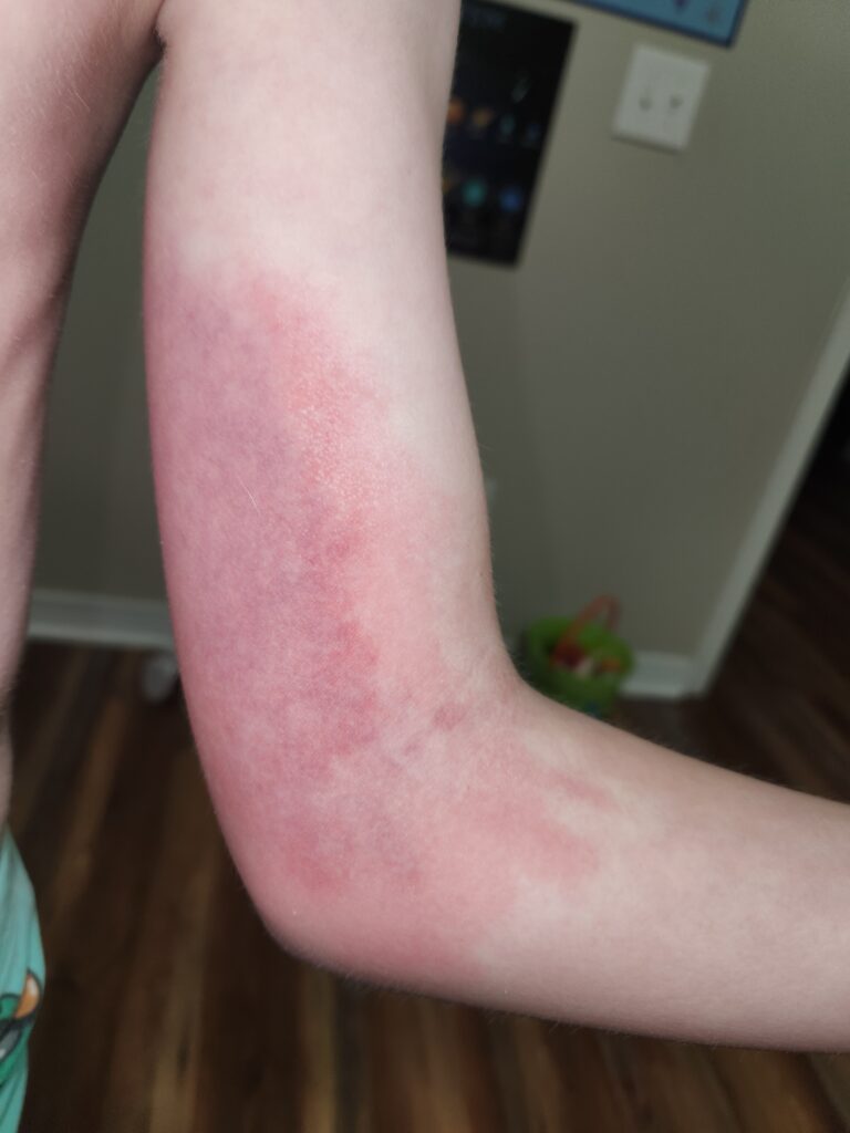 Nearly a year later, we started seeing signs in James that starting Strensiq® would be more beneficial for him, based on the success I had, the results of his latest ortho scans, and him experiencing more symptoms. His start to the treatment was extremely rough. He had large-scale site reactions accompanied by fevers and severe headaches, which caused us all to take a pause (we were in constant communication with his endocrinologist, PantherRx – the makers of Strensiq®, and OneSource). We paused treatment to allow his body to reset and discussed whether we were to try again. After about a month, we attempted a restart at half dose and saw significant improvement in site reactions as well as overall improvement of HPP symptoms.