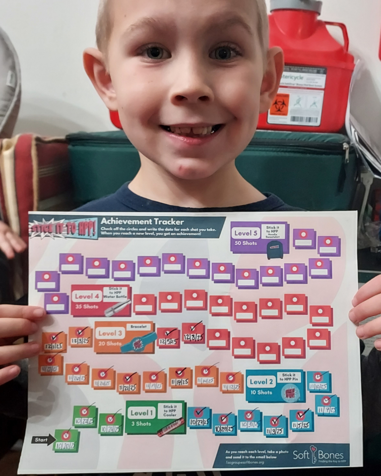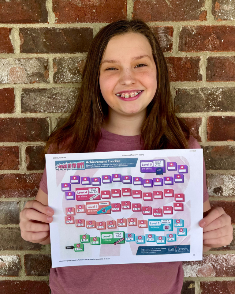 Soft Bones’ Teen Advisory Council (TAC) is pleased to offer a program that includes a self-injection starter kit to help children gain independence on their self-injection journey. The kit has helpful tips and fun activities along the way that are great for children and their families. Together let us “Stick it to HPP!” Please fill out the form below to inquire about the program. Mailings are available to U.S. residents only.