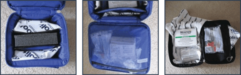 To ensure proper temperature is maintained, it is strongly suggested you do a test run before your trip with vials (that you intend to throw away), syringes, and alcohol wipes. Make sure the cold packs have been in the freezer for at least 48 hours before the test run. Pack all the supplies and vials in the case (see below), then place either a refrigerator/freezer wireless digital thermometer or a regular digital refrigerator/freezer thermometer on top of the box of vials. Add the frozen pack to the pockets and close the case. Check the temperature every hour to confirm it is holding the desired temperature of 2°C to 8°C (36°F-46°F) for Strensiq®.